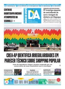 Quinta-feira, 05 de Dezembro de 2025 Edição 10.200 - Ano 32 - R$ 2,00 COMPROMISSO COMA NOTÍCIA CONECTE-SE COM O DIÁRIO DO AMAPÁ - PARTICIPE ! ENVIANDO SUA OPINIÃO, DICAS, FOTOS E VÍDEOS Site: diariodoamapa.com WhatsApp: 99972-1141 E-mail: diario-ap@uol.com.br Twitter: @diariodoamapa Rádio: Diário FM 90.9 Redação, Publicidade, Classificados, Entregas, Assinaturas, MACAPÁ E REGIÃO (Segunda a sexta, das 8h às 18h) 19h Fechamento na Redação ÍNDICE INDICADORES Atendimento ao cliente Dólar Comercial R$ 5,45 Dólar Turismo R$ 5,46 Euro R$ 5,46 Poupança 3,567% Salário Minimo R$ 1,518 20 páginas ESTA EDIÇÃO (96) 3 223-7690 Editoria/Pags. Artigos 2 From 3 Argumento 4 Esplanada 5 Paulo Silva 6 Economia 7 Politíca 8 Cidades 9 Cidades 10 Polícia 11 Esportes 12 Nota10 14 Heraldo 15 Social 16 CREA-AP IDENTIFICA IRREGULARIDADES EM PARECER TÉCNICO SOBRE SHOPPING POPULAR Caso do logradouro chega à Justiça originado por um comerciante do local insatisfeito com a interdição 9 CENTRO DE RADIOTERAPIA INICIARÁ ATENDIMENTOSNA SEGUNDA, 8 10 OPERAÇÃO CARTUCHO DE MIDAS PF investiga esquema de contrabando de ouro e lavagem de dinheiro em Oiapoque D urante trabalho investigativo foram identificadas transferências expressivas de joalherias de diversos estados para um posto de combustível no município. 11 BLUMENAU/SC Atletas embarcam para disputar Brasileirão de Tênis de Mesa 12 V Foto/ Reprodução Lucas Barreto critica reajuste de até 32% na conta de luz no Amapá NO ARAXÁ Luau na Samaúma terá celebração pelo Dia do Samba e acender das luzes PRONUNCIAMENTO 11 14