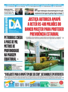 Sábado, 20 de Dezembro de 2025 Edição 10.210 - Ano 32 - R$ 2,00 COMPROMISSO COMA NOTÍCIA Site: diarioap.com WhatsApp: 9972-1141 E-mail: diario-ap@uol.com.br Twitter: @diariodoamapa Rádio: Diário FM 90.9 CONECTE-SE COM O DIÁRIO DO AMAPÁ - PARTICIPE ! ENVIANDO SUA OPINIÃO, DICAS, FOTOS E VÍDEOS Redação, Publicidade, Classificados, Entregas, Assinaturas, MACAPÁ E REGIÃO (Segunda a sexta, das 8h às 18h) 19h Fechamento na Redação ÍNDICE INDICADORES Atendimento ao cliente Dólar Comercial R$ 5,87 Dólar Turismo R$ 6,08 Euro R$ 6,36 Poupança 4,567% Salário Minimo R$ 1,518 20 páginas ESTA EDIÇÃO (96) 3223-7690 Editoria/Pags. Artigos 2 From 3 Argumento 4 Esplanada 5 Paulo Silva 6 Economia 7 Politíca 8 Cidades 9 Cidades 10 Polícia 11 Esportes 12 Nota10 14 Heraldo 15 Social 16 PETROBRAS CHEGA A MAIS DE MIL METROS DE PROFUNDIDADE NA MARGEM EQUATORIAL JUSTIÇA AUTORIZA AMAPÁ A RETER R$ 400 MILHÕES DO BANCO MASTER PARA PROTEGER PREVIDÊNCIA ESTADUAL A medida evita prejuízos ao patrimônio previdenciário e assegura a proteção dos recursos pertencentes aos segurados da Amprev TROCA DE TIROS ‘Tio Patinhas’ morre em confronto com a Polícia Militar AÇÃO MPF requer indenização e descontaminação de rios após rompimento de barragem de garimpo ilegal no Amapá SÉRIE C Futebol amapaense busca superar barreira histórica 12 “O REAJUSTE PARA O AMAPÁ TEM QUE SER ZERO”, DIZ RANDOLFE EM ENTREVISTA Agência reguladora de energia elétrica voltará a tratar do aumento na tarifa do consumo de luz no estado, pedido pela concessionária CEA Equatorial, em janeiro, com base em 14%, segundo cálculo referente à Unidade de Bem Público, índice que senador não aceita junto com o governador Clécio Luís e colega de parlamento Davi Alcolumbre 8 8 9 11 10