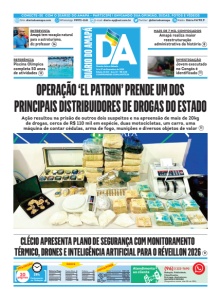 CONECTE-SE COM O DIÁRIO DO AMAPÁ - PARTICIPE ! ENVIANDO SUA OPINIÃO, DICAS, FOTOS E VÍDEOS Quarta-feira a Sábado 24 a 27 de Dezembro de 2025 Edição 10.213 - Ano 32 - R$ 2,00 COMPROMISSO COMA NOTÍCIA Site: diariodoamapa.com WhatsApp: 99972-1141 E-mail: diario-ap@uol.com.br Twitter: @diariodoamapa Rádio: Diário FM 90.9 Redação, Publicidade, Classificados, Entregas, Assinaturas, MACAPÁ E REGIÃO (Segunda a sexta, das 8h às 18h) 19h Fechamento na Redação ÍNDICE INDICADORES Atendimento ao cliente Dólar Comercial R$ 5,58 Dólar Turismo R$ 5,79 Euro R$ 6,51 Poupança 2,567% Salário Minimo R$ 1,518 20 páginas ESTA EDIÇÃO (96) 3 223-7690 Editoria/Pags. Artigos 2 From 3 Argumento 4 Esplanada 5 Paulo Silva 6 Economia 7 Politíca 8 Cidades 9 Cidades 10 Polícia 11 Esportes 12 Nota10 14 Social 15 Publicidade 16 CLÉCIO APRESENTA PLANO DE SEGURANÇA COM MONITORAMENTO TÉRMICO, DRONES E INTELIGÊNCIA ARTIFICIAL PARA O RÉVEILLON 2026 9 ENTREVISTA Amapá tem vocação natural para o astroturismo, diz professor 14 REFERÊNCIA Piscina Olímpica completa 50 anos de atividades 12 MAIS DE 7 MIL CONVOCADOS Amapá realiza maior reestruturação administrativa da história 8 INVESTIGAÇÃO Jovem executado no Congós é identificado 11 Ação resultou na prisão de outros dois suspeitos e na apreensão de mais de 20kg de drogas, cerca de R$ 110 mil em espécie, duas motocicletas, um carro, uma máquina de contar cédulas, arma de fogo, munições e diversos objetos de valor 11 OPERAÇÃO ‘EL PATRON’ PRENDE UM DOS PRINCIPAIS DISTRIBUIDORES DE DROGAS DO ESTADO