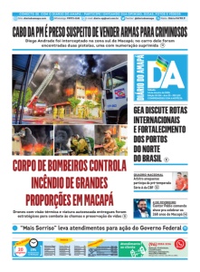 CORPO DE BOMBEIROS CONTROLA INCÊNDIO DE GRANDES PROPORÇÕES EM MACAPÁ Sábado, 24 de Janeiro de 2026 Edição 10.234 - Ano 33 - R$ 2,00 COMPROMISSO COMA NOTÍCIA GEA DISCUTE ROTAS INTERNACIONAIS E FORTALECIMENTO DOS PORTOS DO NORTE DO BRASIL QUADRO NACIONAL Árbitro amapaense participa da pré-temporada Série A da CBF 12 4 DE FEVEREIRO Cantor Pablo comanda show pra celebrar os 268 anos de Macapá CONECTE-SE COM O DIÁRIO DO AMAPÁ - PARTICIPE ! ENVIANDO SUA OPINIÃO, DICAS, FOTOS E VÍDEOS Site: diariodoamapa.com WhatsApp: 99972-1141 E-mail: diario-ap@uol.com.br Twitter: @diariodoamapa Rádio: Diário FM 90.9 Drones com visão térmica e viatura autoescada entregues foram estratégicos para combate às chamas e preservação de vidas 9 Redação, Publicidade, Classificados, Entregas, Assinaturas, MACAPÁ E REGIÃO (Segunda a sexta, das 8h às 18h) 19h Fechamento na Redação ÍNDICE INDICADORES Atendimento ao cliente Dólar Comercial R$ 5,28 Dólar Turismo R$ 5,49 Euro R$ 6,24 Poupança 3,325% Salário Minimo R$ 1,621 20 páginas ESTA EDIÇÃO (96) 3084-2216 Editoria/Pags. Artigos 2 From 3 Argumento 4 Esplanada 5 Paulo Silva 6 Economia 7 Politíca 8 Cidades 9 Cidades 10 Polícia 11 Esportes 12 Nota10 14 Heraldo 15 Social 16 CABO DA PM É PRESO SUSPEITO DE VENDER ARMAS PARA CRIMINOSOS Diego Andrade foi interceptado na zona sul de Macapá; no carro dele foram encontradas duas pistolas, uma com numeração suprimida “Mais Sorriso” leva atendimentos para ação do Governo Federal 10 8 14 11