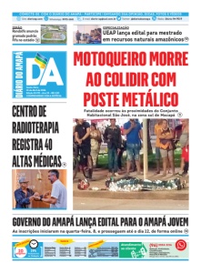 Sexta-feira, 10 de Abril de 2026 Edição 10.291 - Ano 32 - R$ 2,00 COMPROMISSO COMA NOTÍCIA Site: diarioap.com WhatsApp: 9972-1141 E-mail: diario-ap@uol.com.br Twitter: @diariodoamapa Rádio: Diário FM 90.9 CONECTE-SE COM O DIÁRIO DO AMAPÁ - PARTICIPE ! ENVIANDO SUA OPINIÃO, DICAS, FOTOS E VÍDEOS Redação, Publicidade, Classificados, Entregas, Assinaturas, MACAPÁ E REGIÃO (Segunda a sexta, das 8h às 18h) 19h Fechamento na Redação ÍNDICE INDICADORES Atendimento ao cliente Dólar Comercial R$ 5,06 Dólar Turismo R$ 5,28 Euro R$ 5,92 Poupança 4,567% Salário Minimo R$ 1,621 20 páginas ESTA EDIÇÃO (96) 3084-2216 Editoria/Pags. Artigos 2 From 3 Argumento 4 Esplanada 5 Paulo Silva 6 Economia 7 Politíca 8 Cidades 9 Cidades 10 Polícia 11 Esportes 12 Nota10 14 Heraldo 15 Social 16 CENTRO DE RADIOTERAPIA REGISTRA 40 ALTAS MÉDICAS MOTOQUEIRO MORRE AO COLIDIR COM POSTE METÁLICO Fatalidade ocorreu às proximidades do Conjunto Habitacional São José, na zona sul de Macapá ZERÃO Randolfe anuncia gramado padrão Fifa no estádio ESPECIALIZAÇÃO UEAP lança edital para mestrado em recursos naturais amazônicos GOVERNO DO AMAPÁ LANÇA EDITAL PARA O AMAPÁ JOVEM As inscrições iniciaram na quarta-feira, 8, e prosseguem até o dia 12, de forma online 11 10 10 12 9