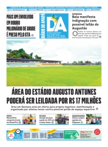 Domingo e Segunda-feira, 26 e 27 de Abril de 2026 Edição 10.304 - Ano 32 - R$ 2,00 COMPROMISSO COMA NOTÍCIA CONECTE-SE COM O DIÁRIO DO AMAPÁ - PARTICIPE ! ENVIANDO SUA OPINIÃO, DICAS, FOTOS E VÍDEOS Site: diariodoamapa.com WhatsApp: 99972-1141 E-mail: diario-ap@uol.com.br Twitter: @diariodoamapa Rádio: Diário FM 90.9 Redação, Publicidade, Classificados, Entregas, Assinaturas, MACAPÁ E REGIÃO (Segunda a sexta, das 8h às 18h) 19h Fechamento na Redação ÍNDICE INDICADORES Atendimento ao cliente Dólar Comercial R$ 4,99 Dólar Turismo R$ 5,20 Euro R$ 5,85 Poupança 3,567% Salário Minimo R$ 1,621 24 páginas ESTA EDIÇÃO (96) 3084-2216 Editoria/Pags. Artigos 2 From 3 Argumento 4 Esplanada 5 Paulo Silva 6 Economia 7 Politíca 9 Cidades 11 Cidades 12 Polícia 15 Esportes 16 Nota10 17 Heraldo 19 Social 20 ÁREA DO ESTÁDIO AUGUSTO ANTUNES PODERÁ SER LEILOADA POR R$ 17 MILHÕES Área em Santana está em oferta para projeto logístico; manifestação é organizada por atletas locais contra possível perda do espaço esportivo 16 MAIS UM ENVOLVIDO EM ROUBO MILIONÁRIO DE GRUDE É PRESO PELO GTA 15 ENTREVISTA Bala manifesta indignação com possível leilão do Augustão O Prefeito de Santana afirmou, em entrevista, que farámobilizaçãopara impedir venda, por parte do Sesi Nacional, marcada para 5 de maio. 10 MARATONANDO Clécio cumpre agenda em Calçoene 9 Wanna Brito conquista bronze em Grand Prix EM 2026 Amapá alcança queda de 44% em crimes letais PÓDIO 16 15